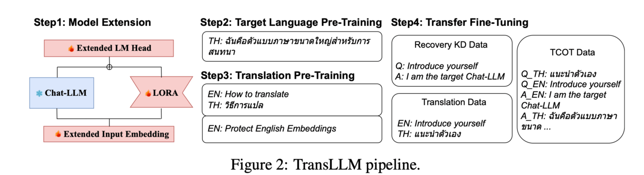 💻How?: The research paper proposes a framework called TransLLM to solve this problem. TransLLM uses a translation chain-of-thought to divide the transfer problem into common sub-tasks, using translation as a bridge between English and non-English. It also utilizes publicly available data to enhance the performance of sub-tasks and prevents catastrophic forgetting during transformation through a method comprising of low-rank adaptation for training and recovery knowledge distillation.