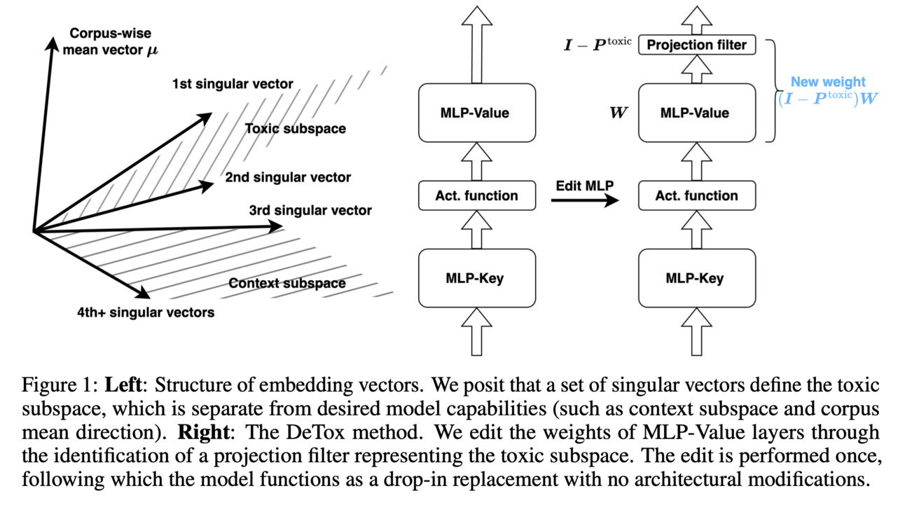 💻How?: Research paper proposes a tuning-free alignment alternative called DeTox. This approach is grounded in theory from factor analysis and works by identifying a toxic subspace in the model parameter space and reducing model toxicity by projecting away the detected subspace. DeTox achieves this by extracting preference data embeddings from the language model and removing non-toxic information from these embeddings. This method is more sample-efficient than DPO and is more robust to noisy data.