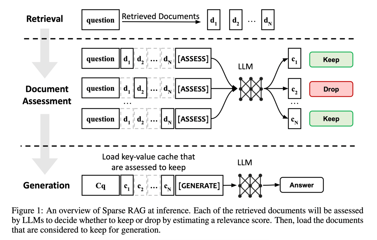 Results: Evaluation on two datasets demonstrated that Sparse RAG achieves an optimal balance between generation quality and computational efficiency, suggesting its effectiveness and generalizability across different types of generation tasks.