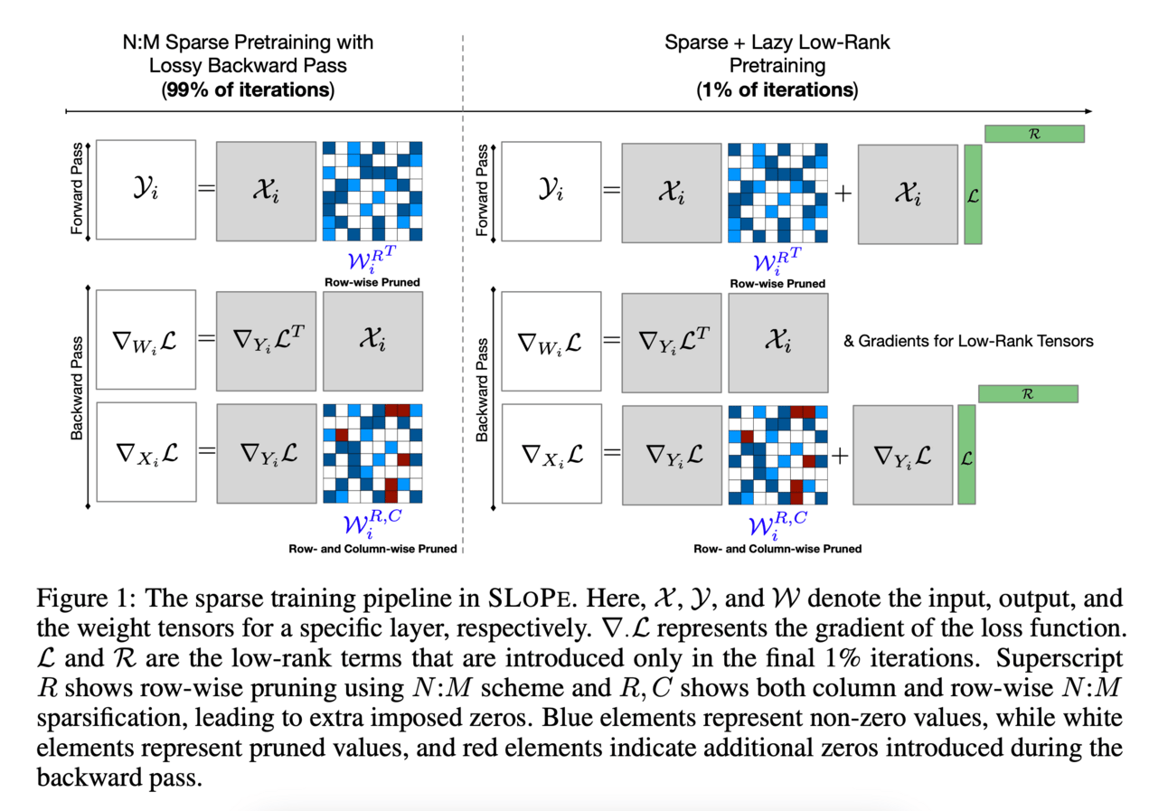 Why?: The paper addresses the challenge of enhancing the accuracy of sparse LLMs while also speeding up their pretraining and inference processes and decreasing their memory footprint.